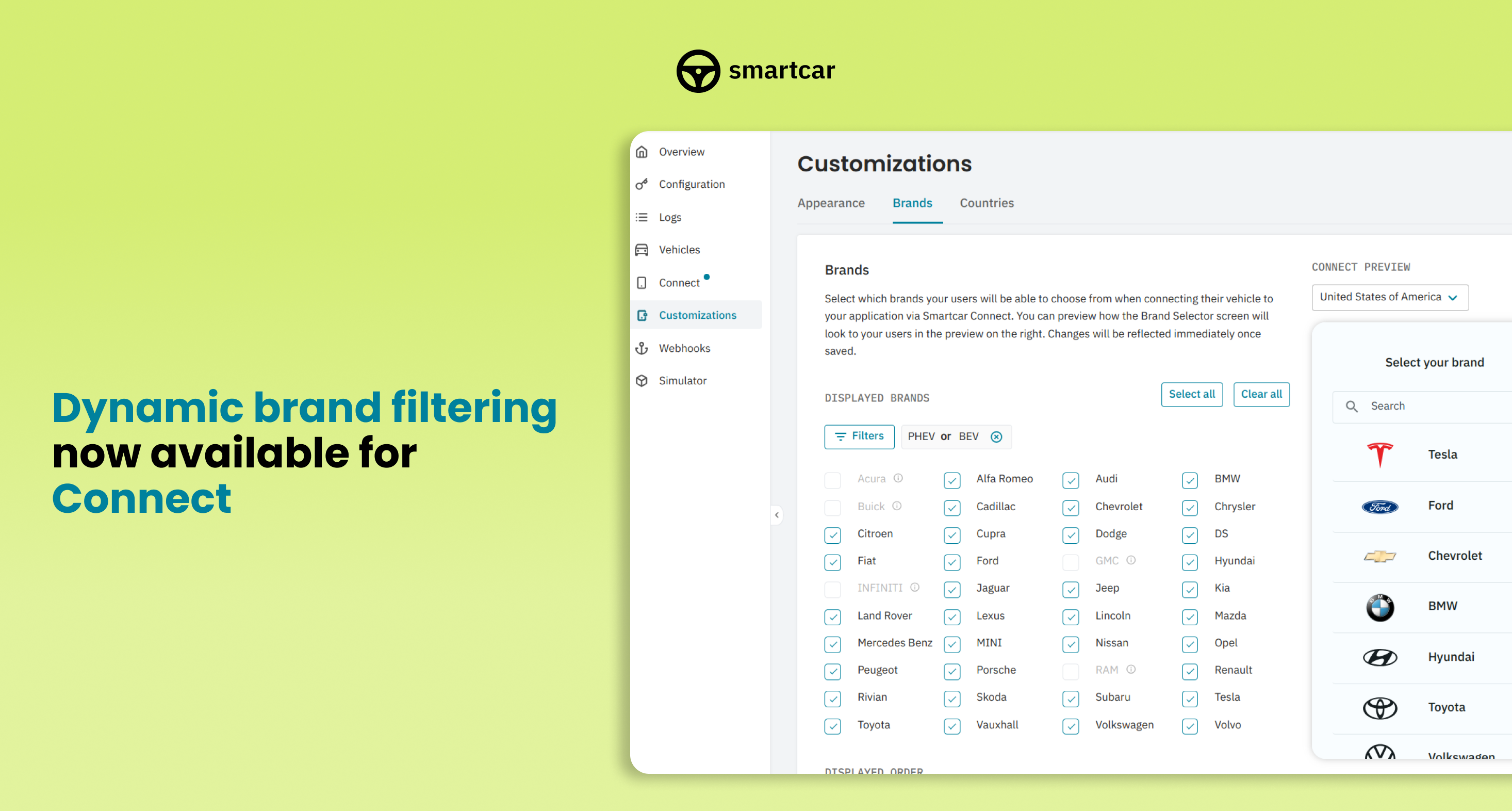 - Each Connect flow launched for the previous two weeks is available in the Smartcar Dashboard with a variety of ways to search for specific Connect launches.